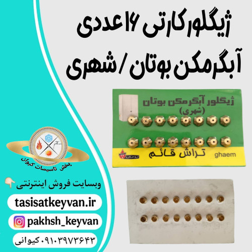 ژیگلور کارتی ۱۶ عددی آبگرمکن بوتان/شهریتماس بگیرید